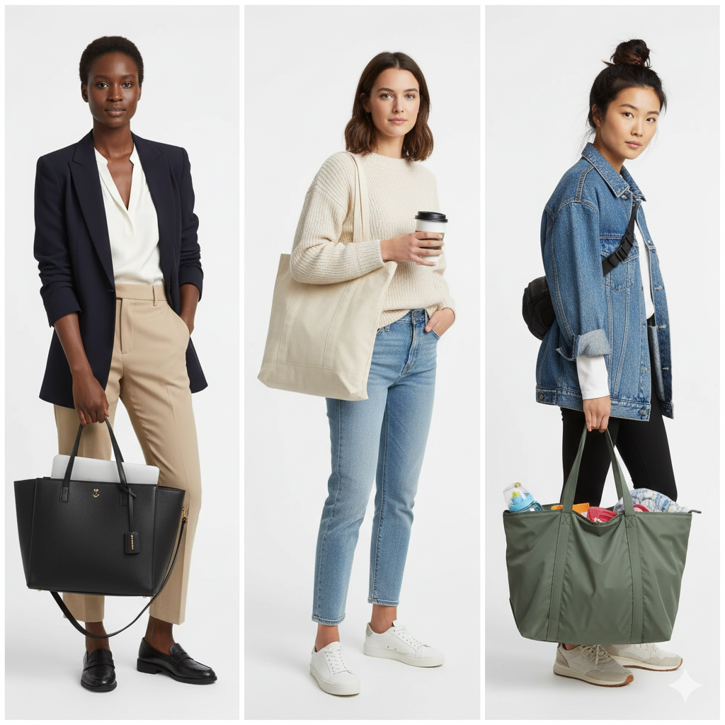Tote bags are the MVP of the season and a must for your capsule wardrobe. Whether you’re a mom on the go, a work baddie, or a college student, tote bags give you space and style. They say, “I’m on the go, but I’ve got it together.” You can find them in all price ranges, and they don’t have to be costly.