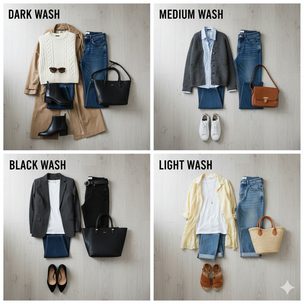 For fall, start with a medium to dark wash pair. Then add blush and light wash options. Whatever you do, invest in a quality pair that will last for decades so you don’t have to keep repurchasing.